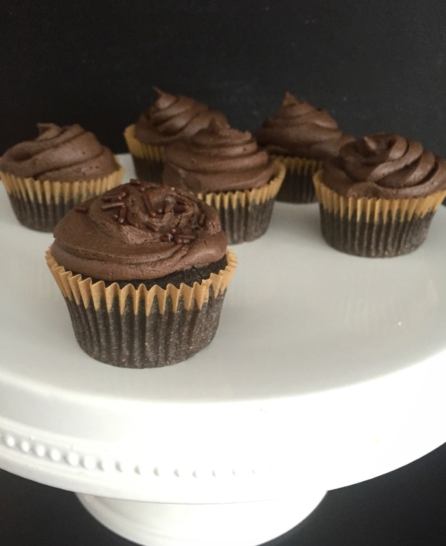 This recipe is far and away my favorite when it comes to a chocolate cupcake. They’re dangerously dark + chocolatey and super moist. I’ve brought them to many a get together where people asked me for the recipe. I love sharing it with them + seeing the disbelief when I tell them they’re gluten free…and vegan. …