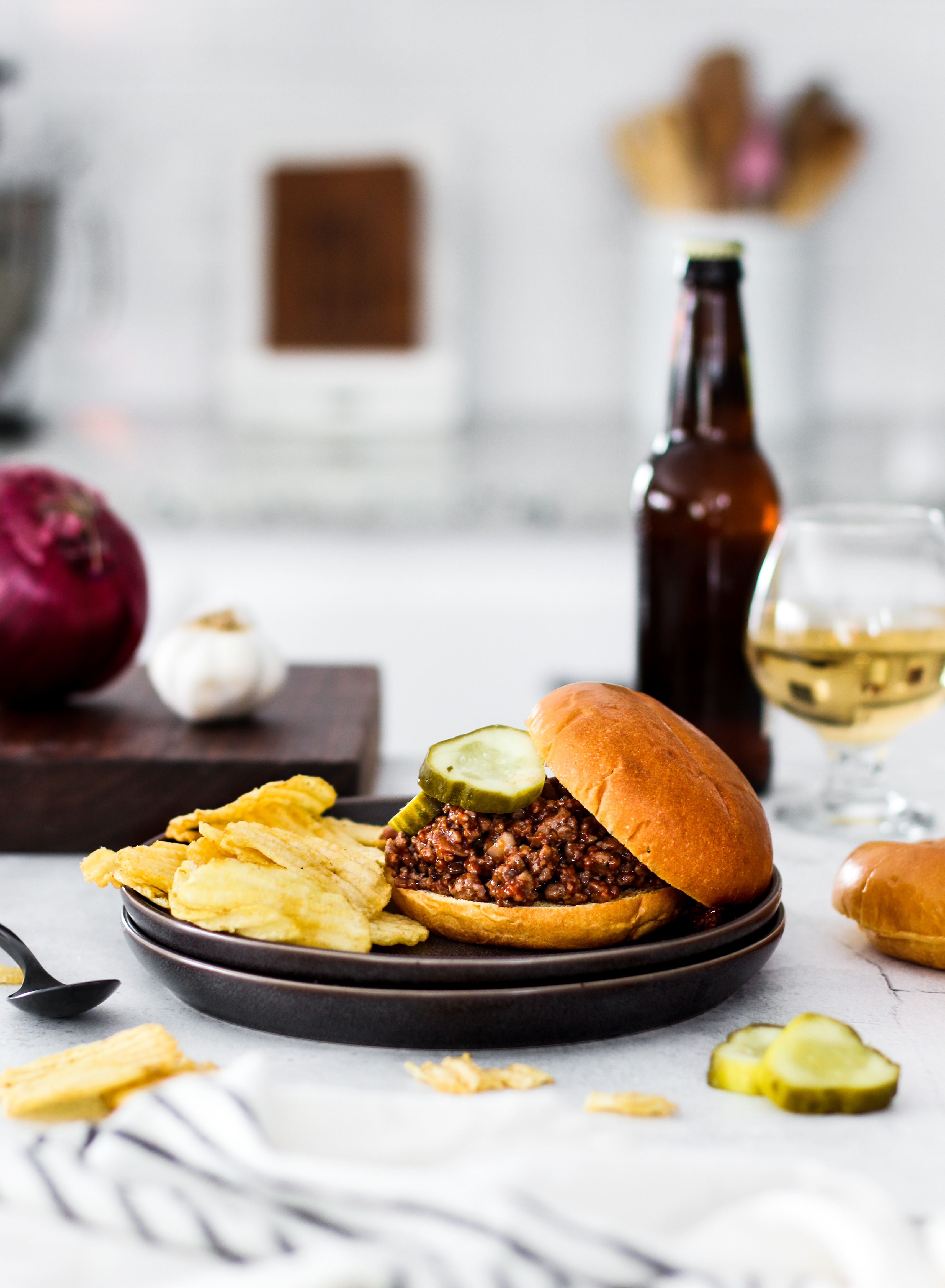 These saucy, beefy sandwiches are the perfect weeknight dinner. My family is convinced this is the best recipe for a homemade Sloppy Joe. Ground beef in a garlicky, sweet tomato sauce served on brioche buns, skip the store bought version and make these for your family tonight!
